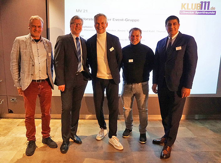 Zum Abschluss der Mitgliederversammlung wurde die Klub 111-Eventgruppe persönlich vorgestellt. Ihr gehören neben Michael Hasemann, Frank Denker, Amine Tadlaoui Ouafi, und Roland Kahl auch Thomas Nawrocki an. In diesem Gremium werden Veranstaltungen, wie beispielsweise im vergangenen August die Bootsfahrt auf der Wakenitz oder im kommenden Dezember der Weihnachts-Afterwork im „Sternenwald Lübeck“ geplant.